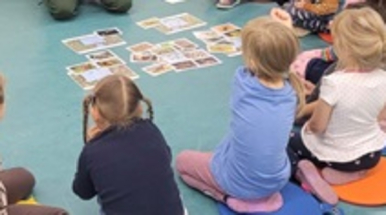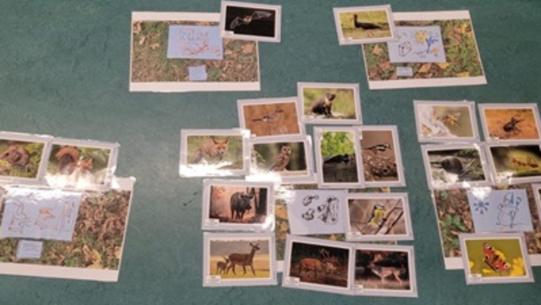 Wir starten in das Projekt mit einem Waldpädagogen, der mit den Kindern über die Tiere im Winter sprach: wie sie sich darauf vorbereiten, wer überwintert wie und wo. Auch wurden Tiere benannt, geordnet und sortiert.