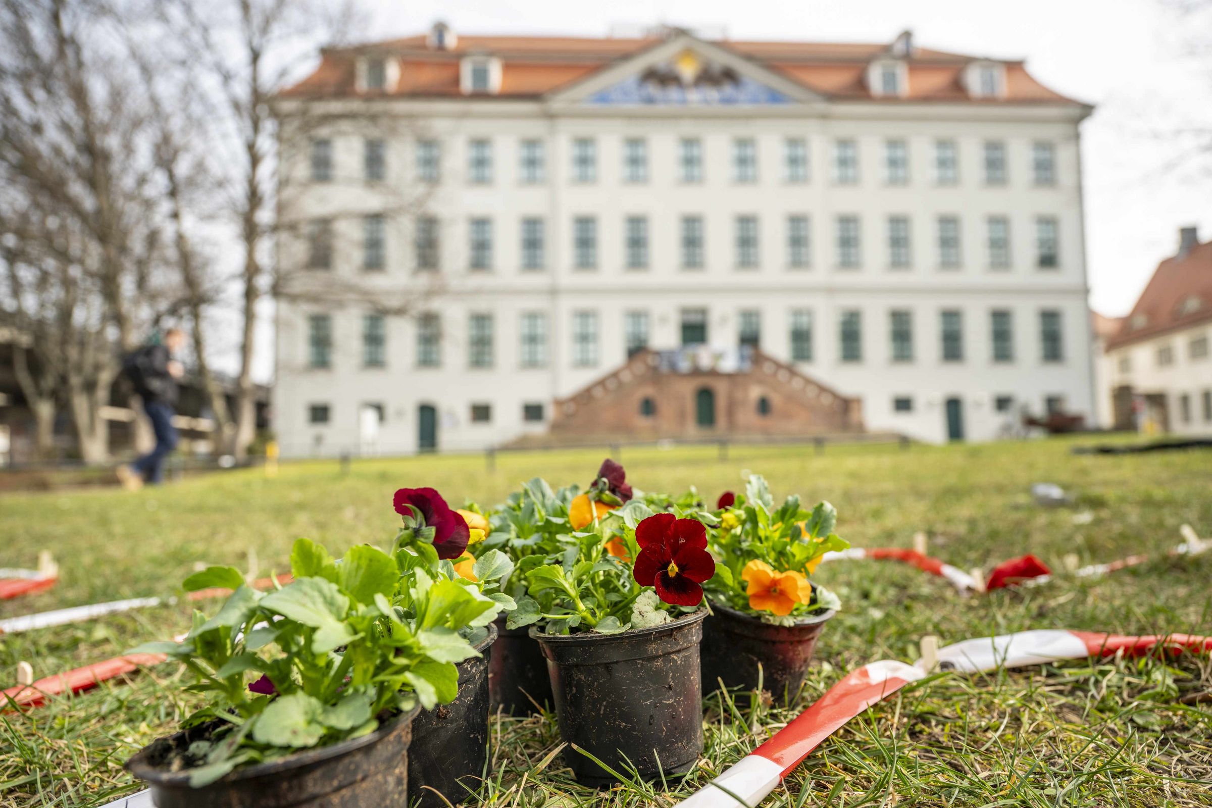 Kinder und Erwachsene haben zum Start des WIR-Festivals 2026 einen riesigen »WIR«-Schriftzug aus Hornveilchen vor dem Historischen Waisenhaus gepflanzt – ein farbenfrohes Zeichen für Gemeinschaft und zivilgesellschaftliches Engagement.