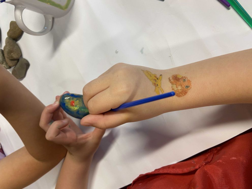 Um Dunkelheit und Monstern die Stirn zu bieten, gab es ein »Mutmachlied« und anschließend gestalteten die Kinder »Mutmachsteine« – für sich selbst und für eine weitere Person.