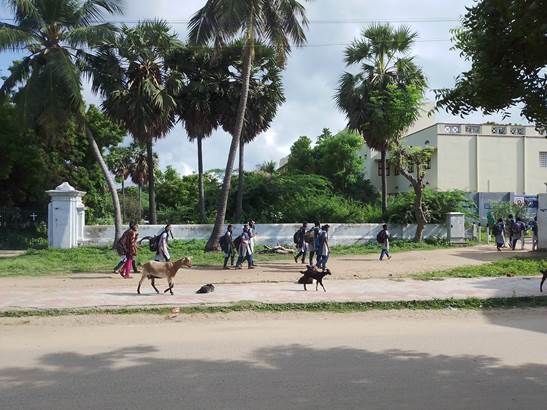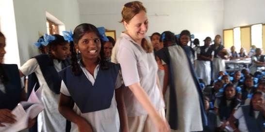 Ich hatte jedoch nicht geahnt, dass wir am Ende alle Klassen besucht haben würden, »damit die anderen nicht enttäuscht sind« wie uns die Lehrerin erklärte, die uns in jeder Klasse vorstellte. Eine Klasse ist mir spontan besonders am Herz gewachsen mit einer offensichtlich sehr beliebten Klassenlehrerin. Jasmin Eppert beeindruckte die Mädels mit ihrem Tamil. Sensationell war der Moment, in dem Jasmin den Mädchen einer Klasse mit blauen Schleifen auf Tamil sagte, ich würde ihre Haarschleifen so toll finden und total spontan ein Chor aus 60 Mädchen uns laut zurief: »Thank You Ma`am!« - Upps, als »Ma`am« hab ich mich bisher nie gesehen.